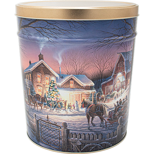 This 3.5 Gallon (13.25 Liter) tin (steel) canister can be filled with Caramelcorn, Cheesecorn, and/or Buttered Popcorn in any and all flavor combinations.