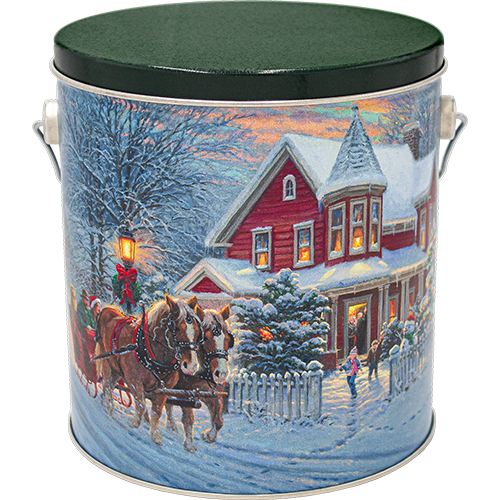 This 1 Gallon (3.8 Liter) tin (steel) canister can be filled with Caramelcorn, Cheesecorn, and/or Buttered Popcorn in any and all flavor combinations.